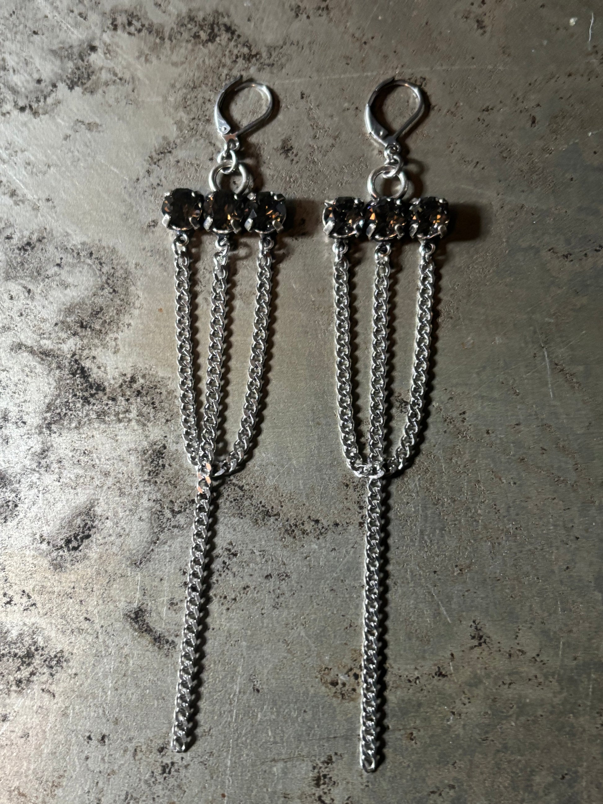 Stainless steel chain and crystal earrings
