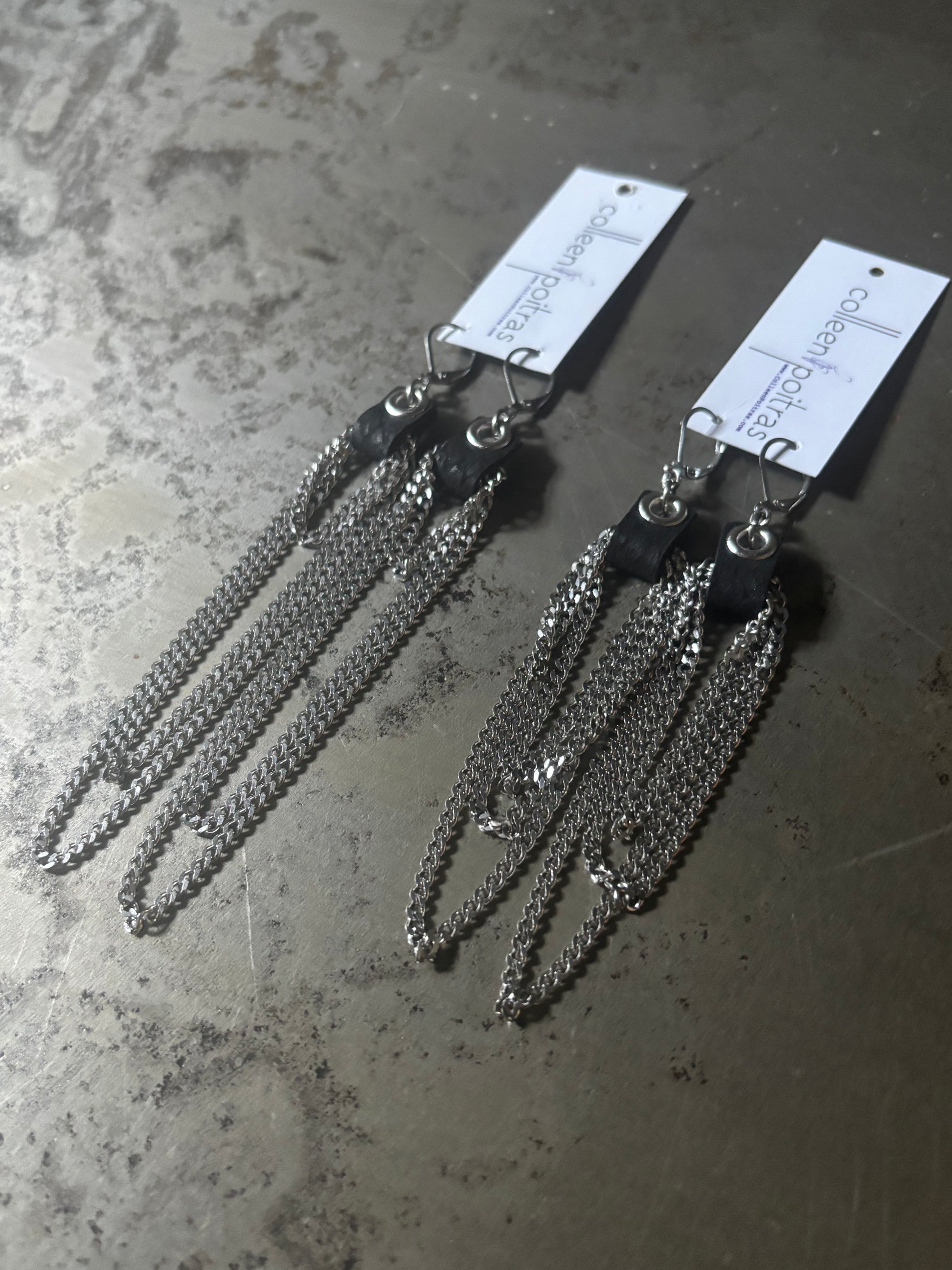 different lengths available. The earrings shown in the picture are 4 “ (leather and chain)