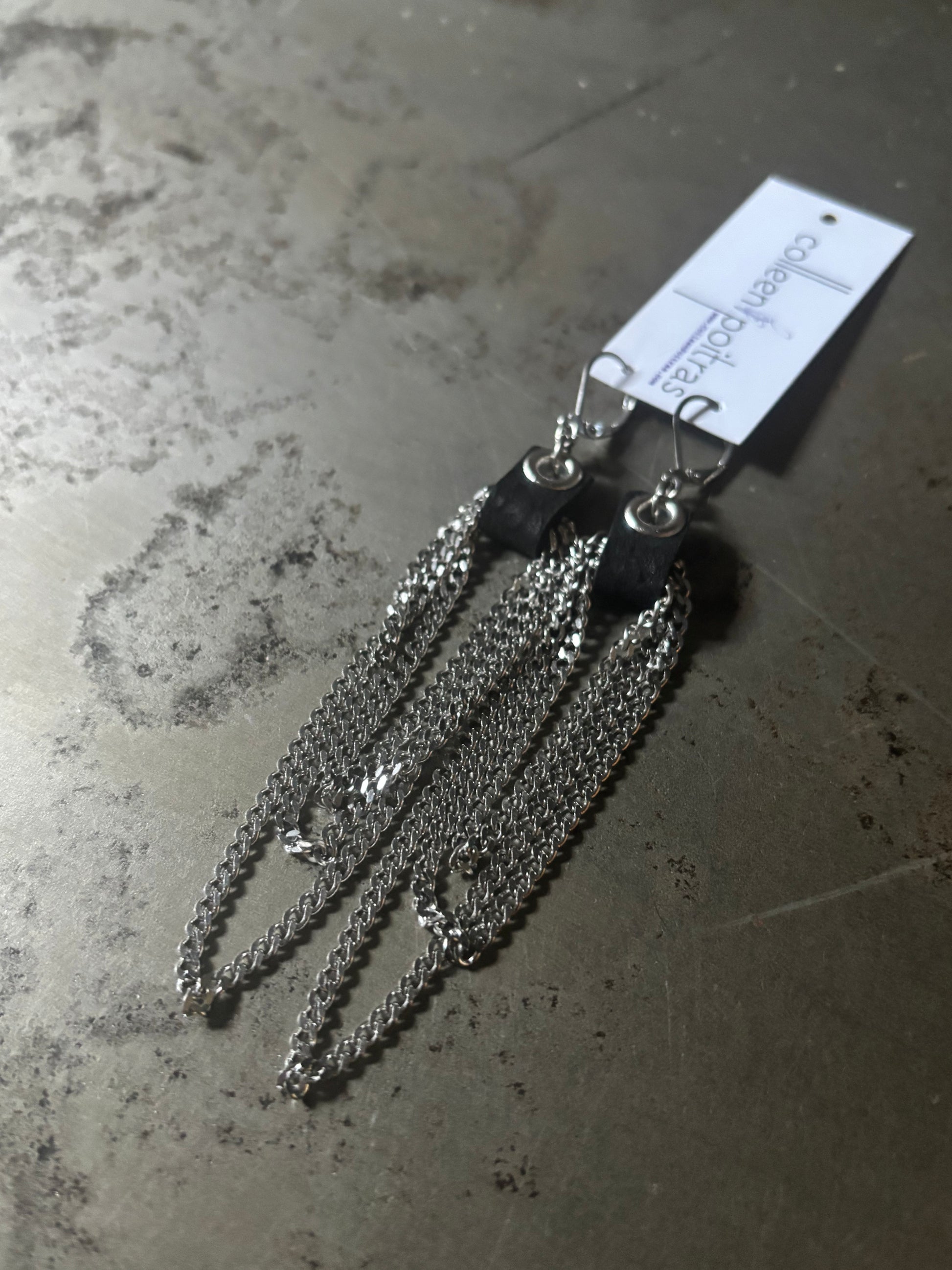 different lengths available. The earrings shown in the picture are 3.5 “ (leather and chain)